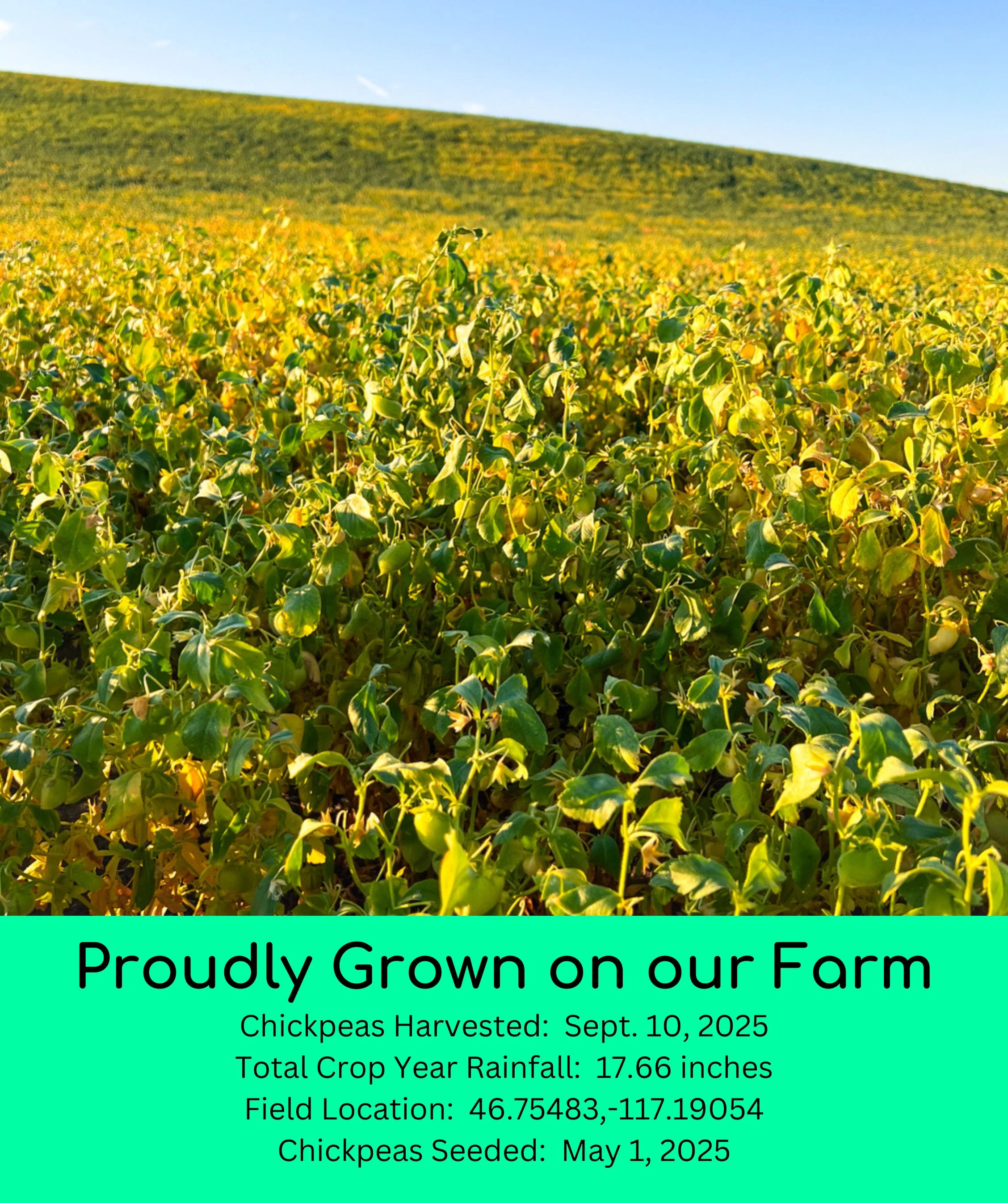 Elevate your cooking experience with Palouse Brand's high quality chickpeas, conveniently packaged in our 25-pound bucket for easy storage. Whether you're stocking up your pantry or preparing for a large gathering, this generous quantity will meet your needs. Our family's dedication to growing quality chickpeas ensures that you'll enjoy freshness and exceptional taste in every dish.